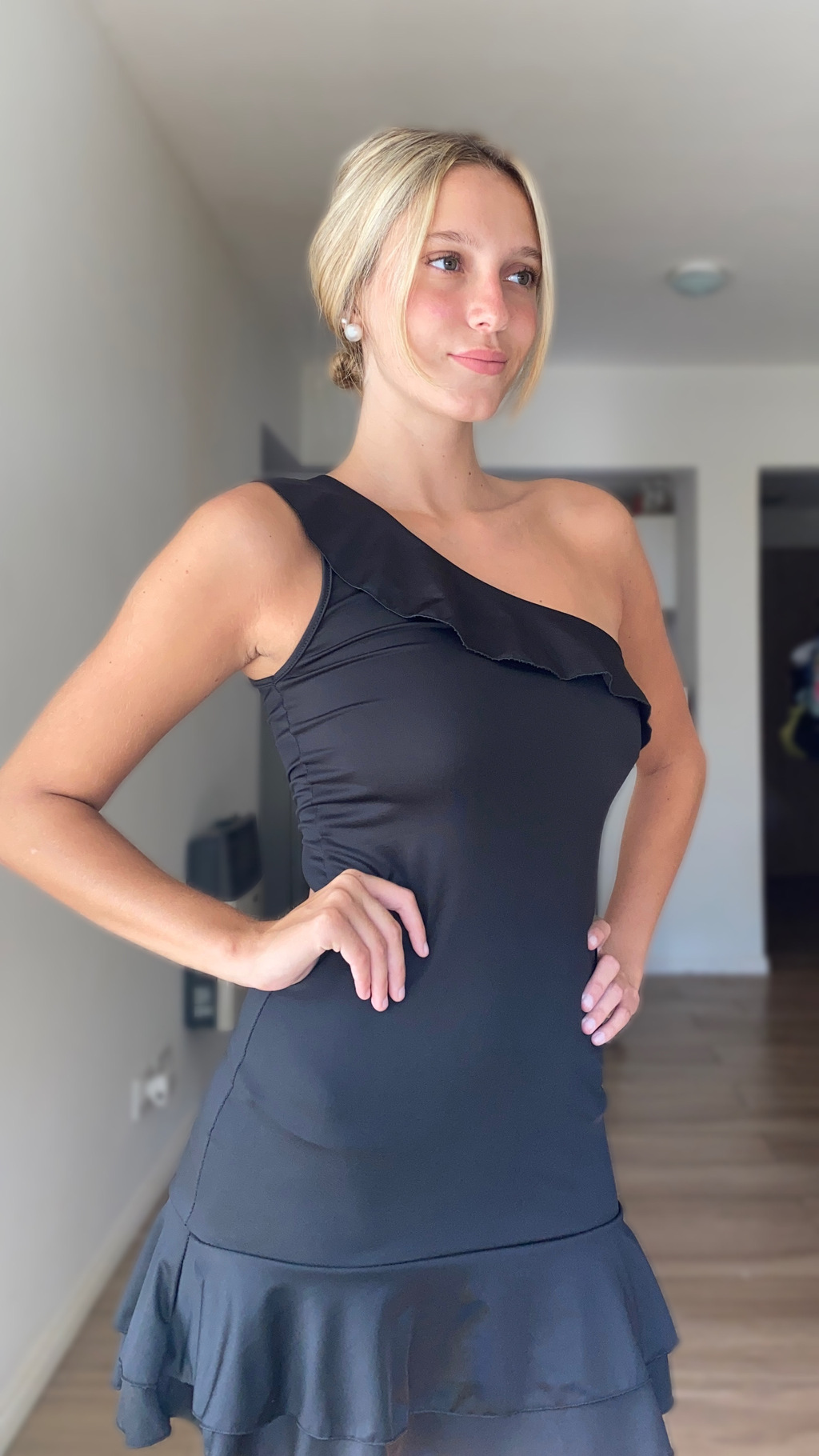 Elegancia y Estilo El Vestido Andy es un sofisticado vestido negro de un solo hombro, diseñado cuidadosamente para realzar tu silueta y brindarte un look excepcional. Perfecto para cualquier tipo de evento, este vestido se convertirá rápidamente en tu favorito.